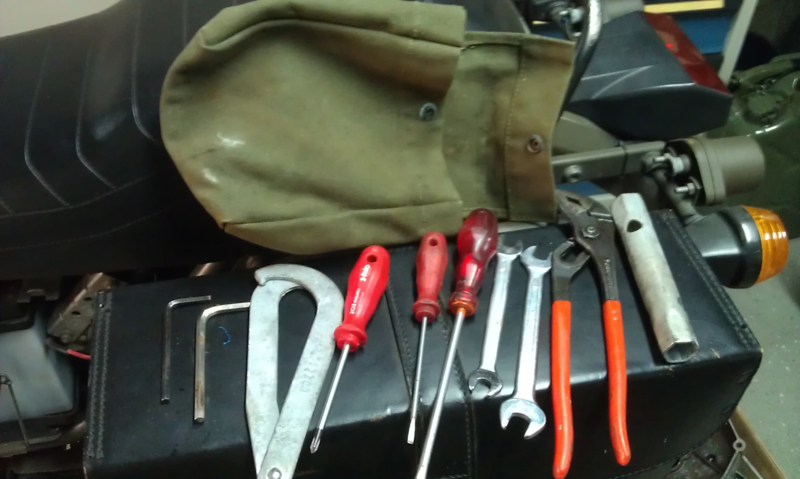 EHBO voor de Moto Guzzi V50 Nato, Road side repairs!